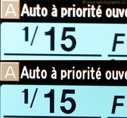 Deux portions de photos hautes résolutions dont celle du haut est flou à cause d'un mouvement.